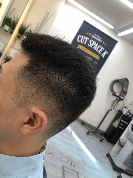 くせ毛と逆毛を抑えたカット フェードカット バックスタイル
