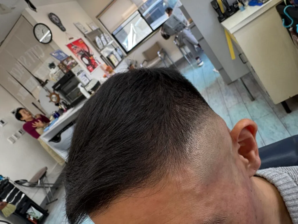 ミドルスキンフェードなロンポワンスタイル barber style