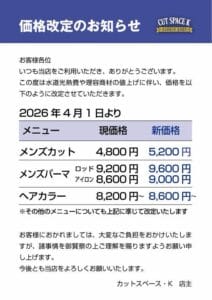 22日日曜日は夕方にカット枠が1つございます