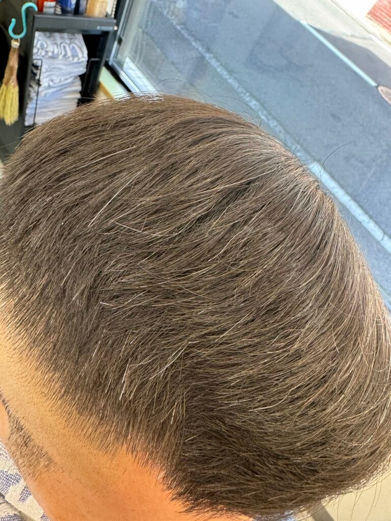長年通って頂いているうちに白髪が少々出始めておられます。