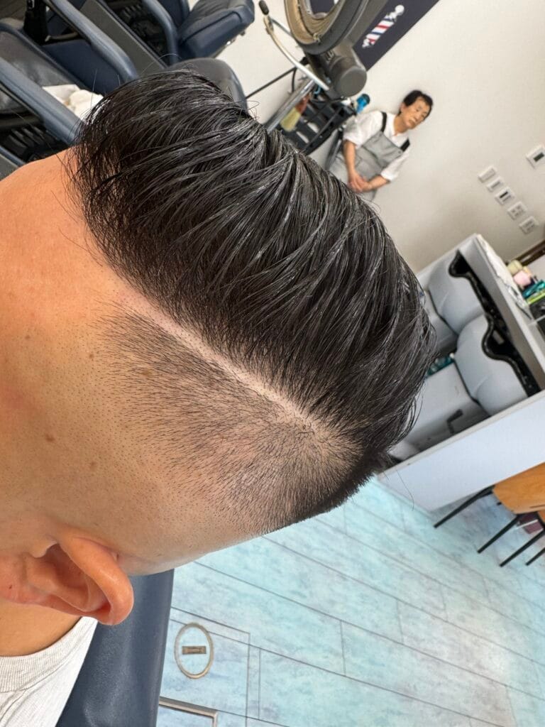 ボカシ染め ビフォーアフター スキンフェード ハードパート ポンパドール