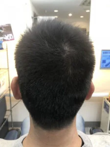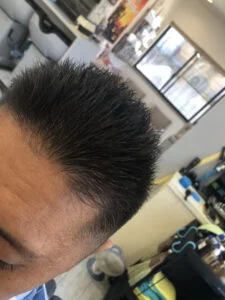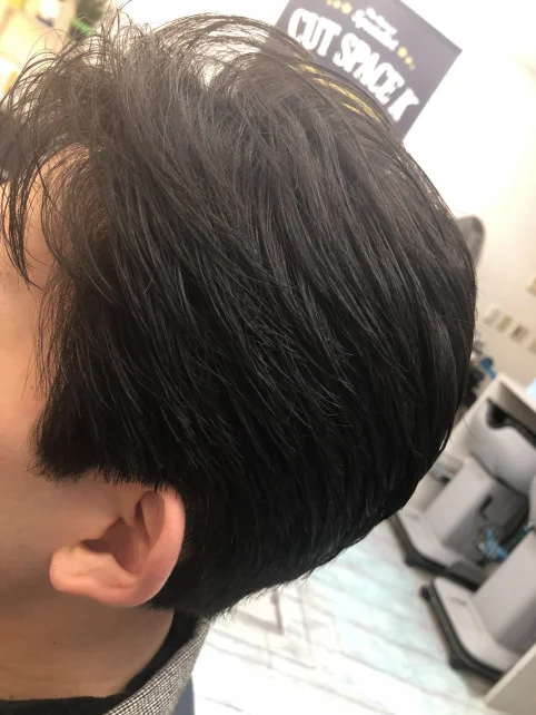 整えすぎない耳周りと襟足。トップからサイド中段位は短めに。