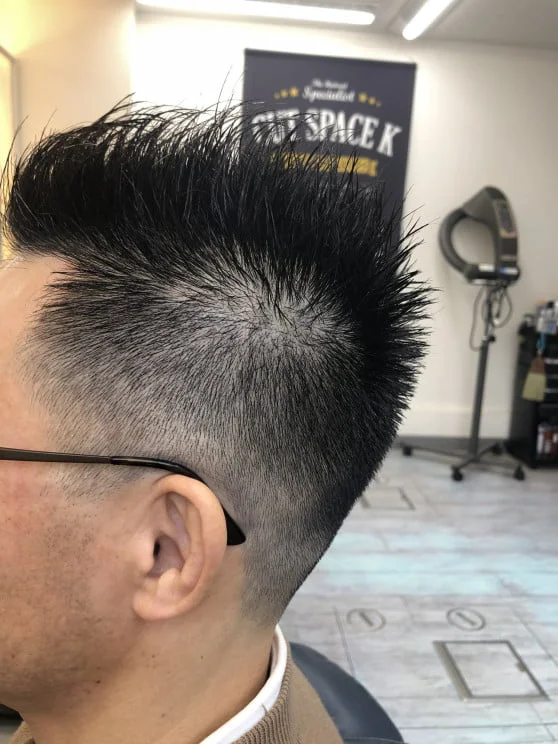 白髪が気になりだしたら… フェードカット ソフトモヒカン 0.8mm 2021-01-29 最終更新日時 : 2023-10-21 cut-space-kリピートオーダーを頂いております、ただ今回は前髪を気持ち短くとの追加オーダー。😊✨✨✨少し白髪が目立た始めていらっしゃるので、白髪を目立たなくするグレージェルを使って仕上がりです👍✨✨✨