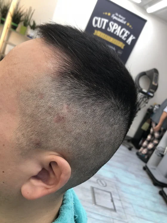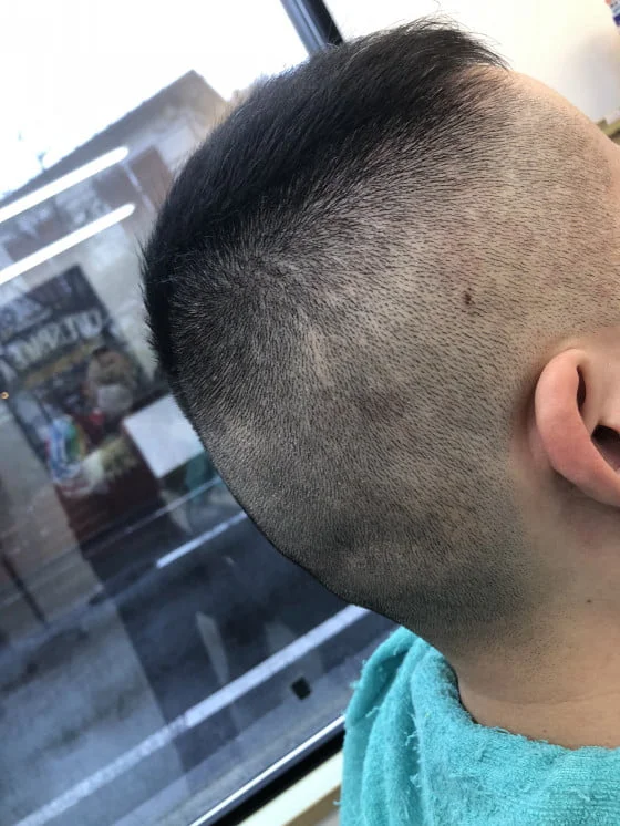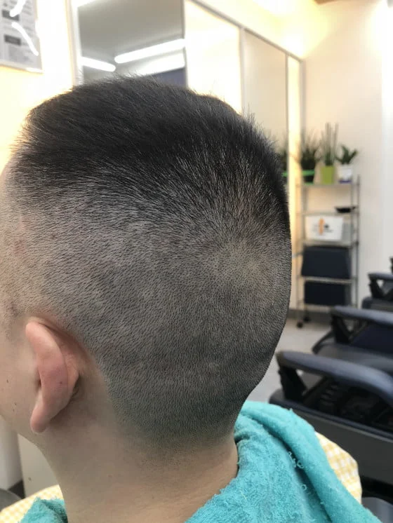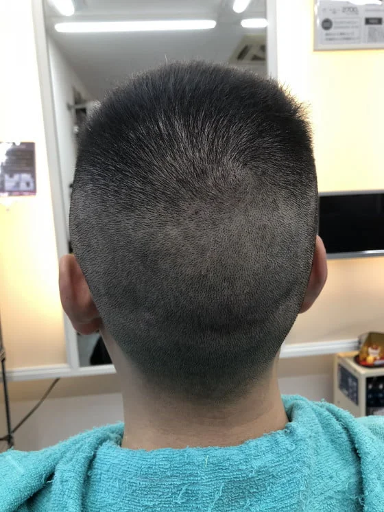 メンズベリーショートなGIカットのお客様です。トップとの接合部のラインが
