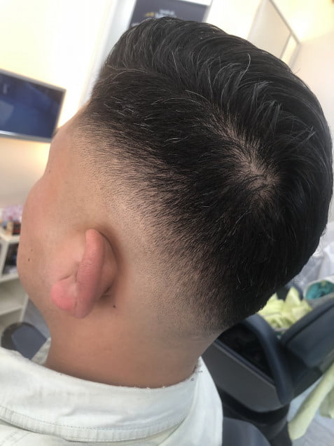 ナチュラルパート ロースキンフェード ポンパドール 2021-05-05 最終更新日時 : 2023-12-29 cut-space-k剃る幅を低めに設定したスキンフェード。スマホでこの時位で。オーダー完了です😊✨✨✨仕上がりにライトなポマードでコームオーバに。流行りのbarberスタイルでカッコよく。フェードの色彩が重要ですね👍✨✨✨