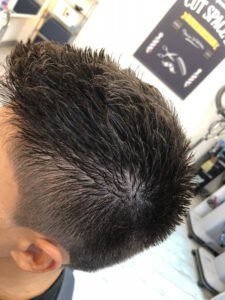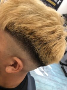 スキンフェード アシメバランスなツーブロック 色々な要素を色彩でまとめるbarberstyle