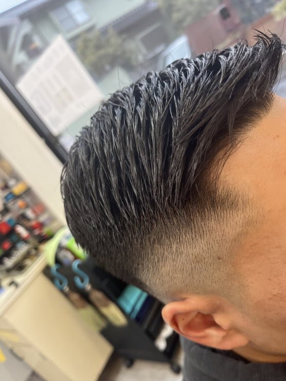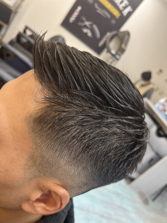 フェードカット 1mm フォワードからサイドへ流す barber style