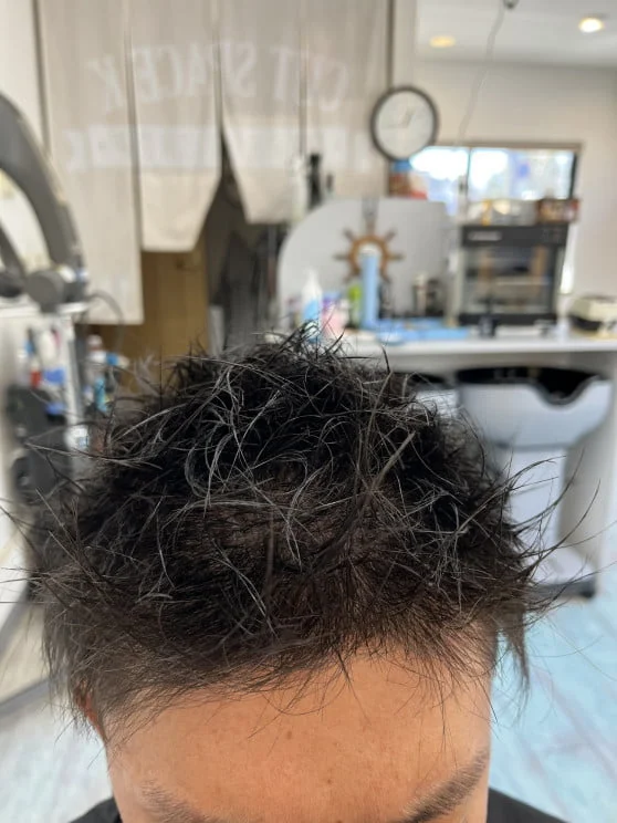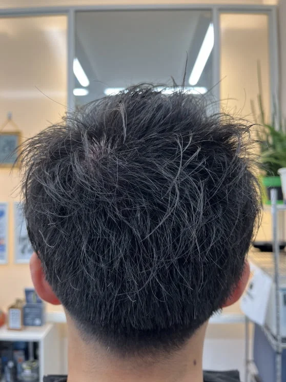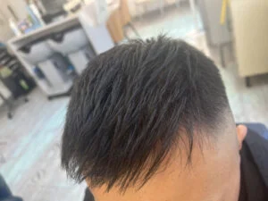 トップフロントは多めにセニングを入れて軽くて動きのあるスタイルや、コンパクトにまとめたりしやすい仕上がりに。ベーススプレーにワックスとポマードを混ぜて、ラフに手ぐしで作れるスタイルです👍✨✨✨