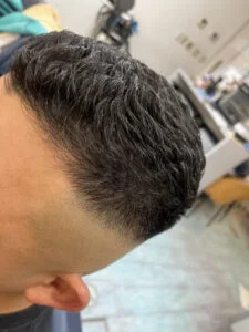周りのスキンフェードはあまり高く剃りあげない位をキープします。