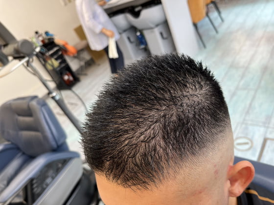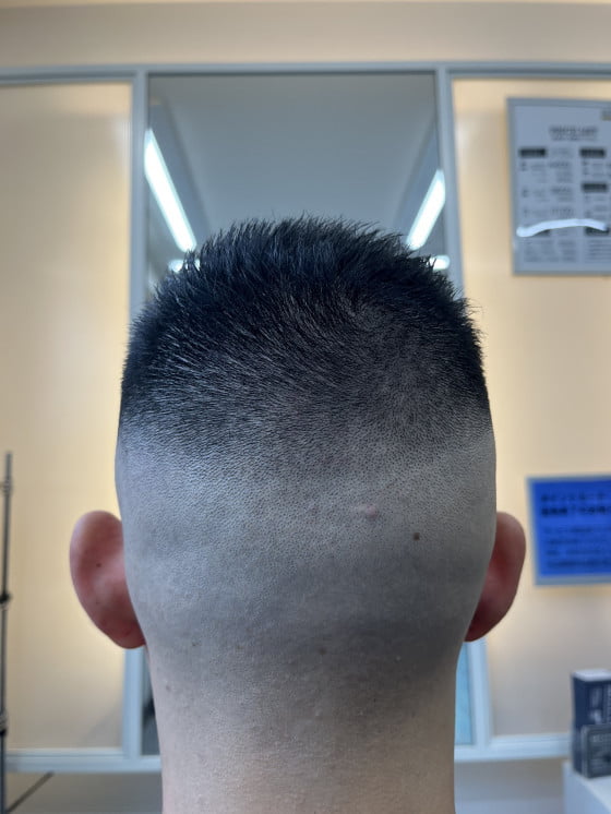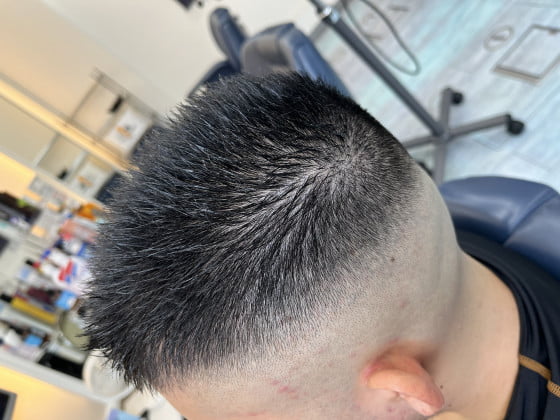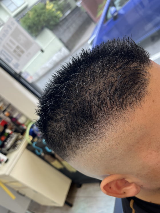 周りはスッキリとスキンフェードに刈りなおし、仕上げにジェリラジェルをつけて完成です👍✨✨✨