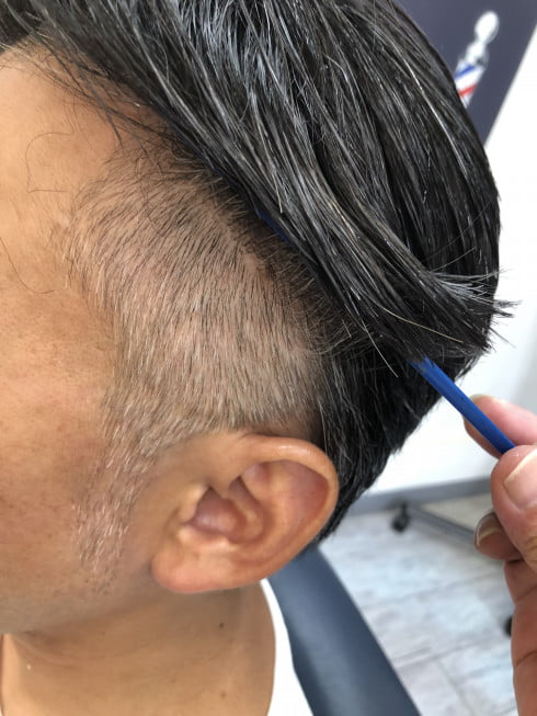 前回の画像を元に夏場とゆう事でセニングを多めにいれたツーブロックスタイル。