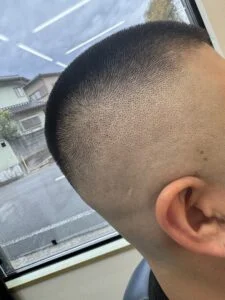 初来店を頂きましたお客様😊✨✨✨ 10ミリくらいで坊主にして、周りはスキンフェードとオーダー。 とりあえず12ミリで切ってみて相談をしましたが、まだ短くても大丈夫との事でしたので9mmでバズカット。 フェードは高くほぼ平 […]