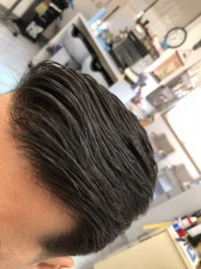 前回の写真から、形はこのままこの時よりやや短く。オーダー完了です👍✨✨✨ 結果、周りに低くバリカンを入れたフェードカットに。分け目をいれたポンパドールをポマードとセットコームで作り完成です。 ミディアムロングは理容師試験 […]